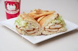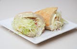 Ham, salami, mozzarella cheese, lettuce, tomato, onion topped with another crust.
