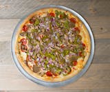 Pepperoni, sausage, mushrooms, green peppers, onions & meatballs (Anchovies available upon request).